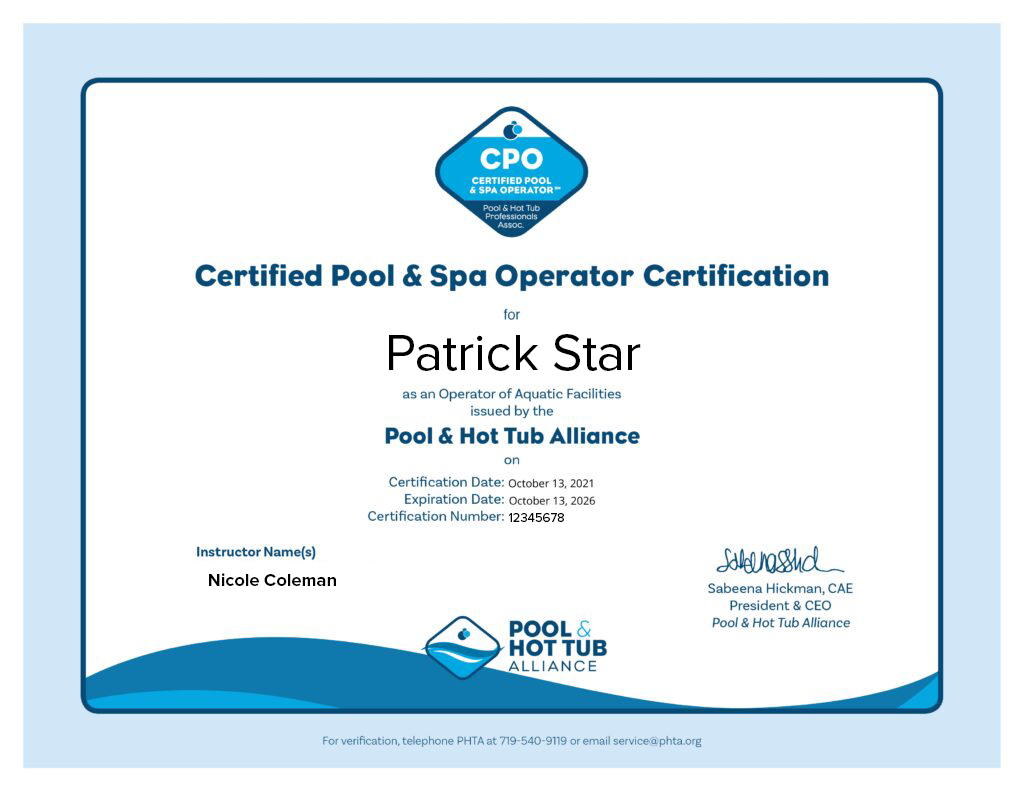 Stay certified and up to date with our Certified Pool Operator (CPO) Recertification Course, the most convenient way for experienced pool professionals to renew their CPO certification. This fully online, self-paced program combines a 1-day live webinar with maximum exam attempts as allowed by the PHTA as well as a comprehensive suite of digital resources, allowing you to refresh your knowledge on the latest industry standards and best practices. Designed for current CPOs needing recertification, our course ensures compliance with PHTA (Pool & Hot Tub Alliance) requirements while offering maximum flexibility. Check to see if virtual delivery is allowed in your area.