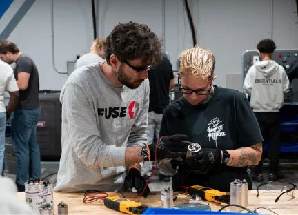 Our Electrician program provides more hands-on training and smaller class sizes than other trade schools. The curriculum is 75% hands-on learning, so you work directly with the tools and materials used by professionals. Our fully equipped electrical lab features multiple zones that simulate a wide variety of real-world environments, allowing you to gain experience in fully framed residential rooms, commercial office setups, and industrial stations. With our low 10-to-1 student-to-teacher ratio, you receive personalized coaching and support, ensuring you are fully prepared to succeed in the field.