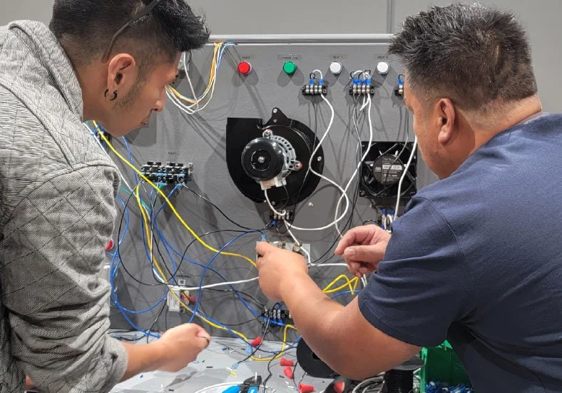 Students expand their skill set with low-voltage and life safety systems. This module covers structured cabling standards, including T568A/B termination and Power over Ethernet (PoE). Fire alarm instruction includes initiating devices, notification appliances, Class A and Class B circuits, end-of-line resistors, and fire alarm control panel monitoring required for commercial occupancies. Fire alarm instruction aligns with NFPA 72 standards, focusing on system supervision, circuit integrity, and code-mandated monitoring requirements. Students learn how life safety systems integrate with electrical infrastructure to meet occupancy and inspection requirements.