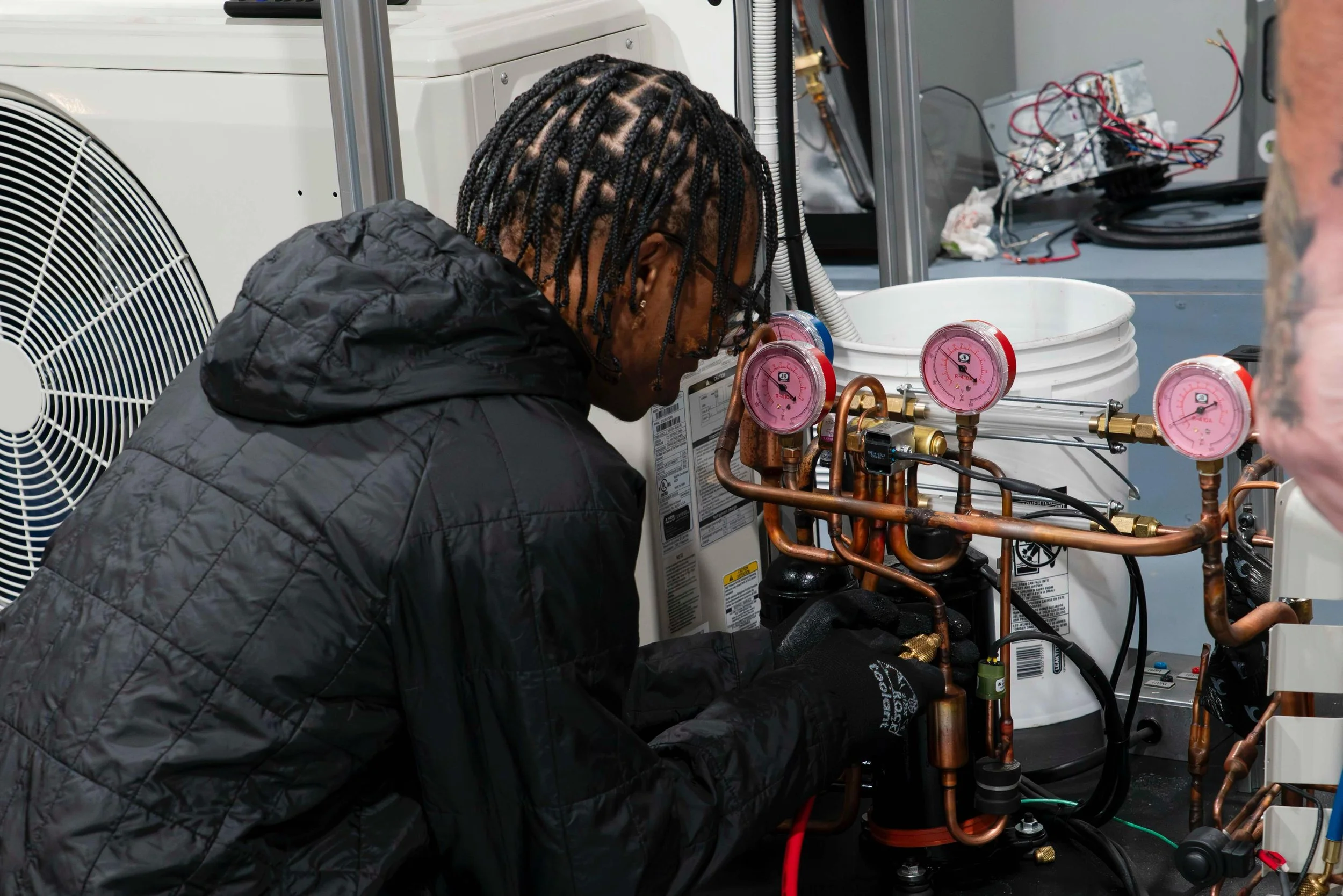 Train directly on live mechanical equipment by measuring airflow, tracing refrigeration lines, and operating gas heating systems.